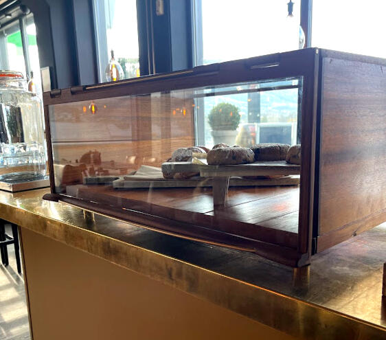 This unique display cabinet, specially made for Perleporten by Paul Newton. Up cycled wood from an old bed and the glass is from an IKEA cabinet.